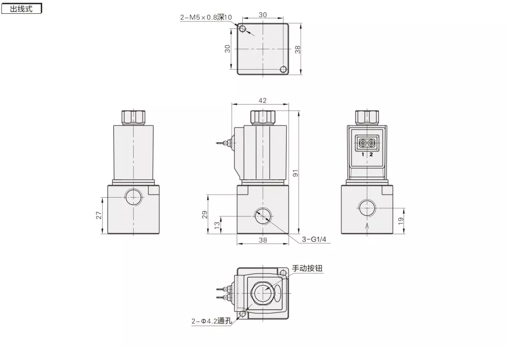 A 3V3 nagy átfolyású mágnesszelep egy 2 állású, 3 utas szelep, közvetlen működésű kialakítással, gyorsabb reakciót és magasabb kapcsolási frekvenciát biztosít, mint a pilóta működtetésű szelepek. Its robust aluminum alloy body supports high air flow and higher pressure, and it can also be used with vacuum applications. The solenoid coil options include DC12V, DC24V, AC110V, or AC220V, ensuring stable and sensitive operation.