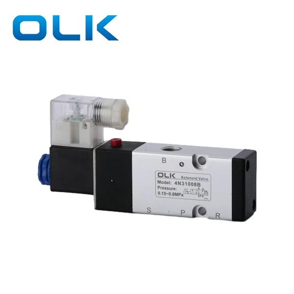 OLK 2Pozíció 5 WAY 4N310-08 lemez mágnesszelepszál G1/4 port mérete.4N310-08 A szelepnek van egy hátsó levegő kialakítása, lehetővé téve a rugalmas telepítést és a helytakarékot, hatékonyan javítja a válasz sebességét és a rendszer stabilitását.