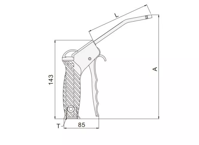 Air Blow Gun vázlatos méret rajza és specifikációja