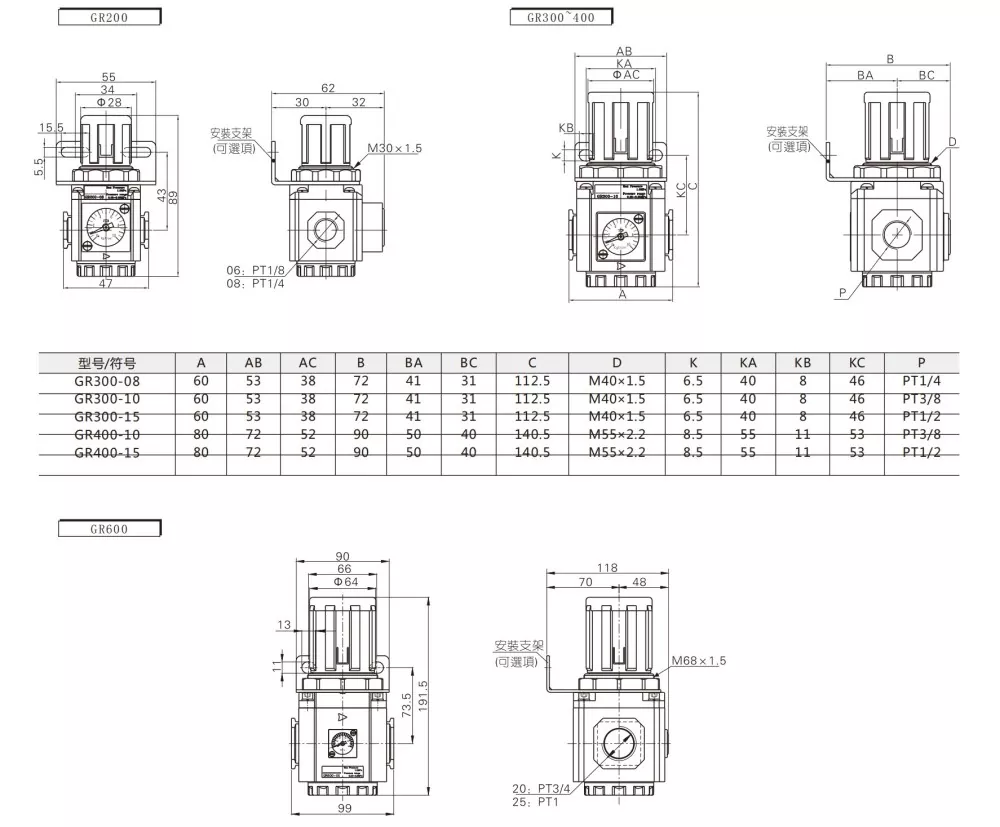Airtac típusú GR nyomásszabályozó Termékjellemzők: