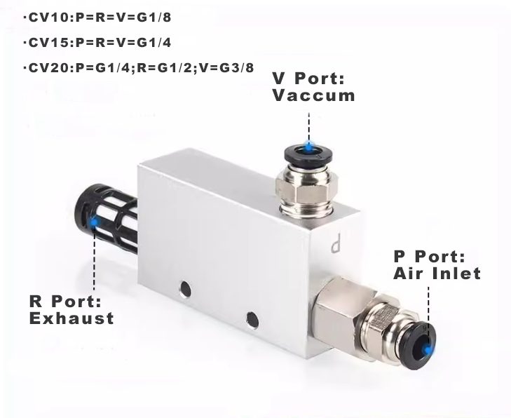 Az OULEIKAI (OLK) CV vákuumgenerátorokat használják a szívó fúvókákhoz vagy berendezésekhez szükséges vákuumkörnyezet biztosításához. A szívó portot a sűrített levegőhez kell csatlakoztatni, míg a szívócsésze a vákuumporthoz van csatlakoztatva. Amikor a sűrített levegő a szívó portból a kipufogónyílásba áramlik, vákuumot generálnak a vákuumporton. Ez a vákuumerő felhasználható az objektumok betartására, olyan feladatok elérésére, mint a rögzítés vagy a támogatás, ezáltal javítva az ipari termelés működési hatékonyságát.
