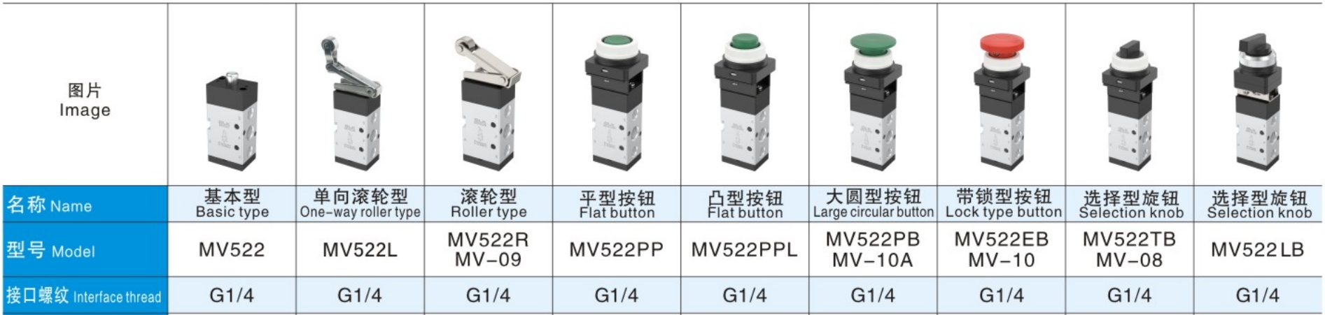 Az MV522 mechanikus gombszelep-szál G1/4, 0-0,8 mPa nyomáson, és nem igényel kenést. Könnyen karbantartható és kiszolgálás, az állásidő és a karbantartási költségek csökkentése.