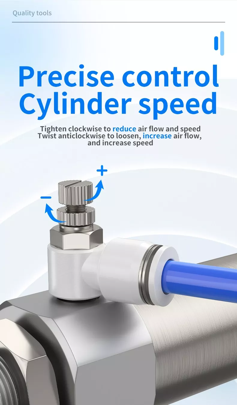 A fordulatszám-szabályozók gyakori pneumatikus alkatrészek, amelyek az aktuátorok kiterjesztésének és visszahúzási sebességének beállítására szolgálnak. A fojtószelepek alapvetően áramlásszabályozó alkatrészek, amelyek szabályozzák a henger fordulatszámát, de beépítési helyzetük, fojtásirányuk és karosszéria kialakításuk eltérő. A szabályozási mód szerint kipufogó-fojtó típusra és bemeneti fojtó típusra oszthatók.