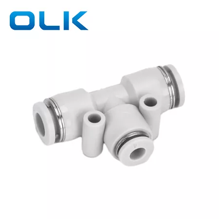 PE illesztés (egyenlő tee unió): Mindhárom csőnek azonos a külső átmérője, amely alkalmas három azonos méretű pneumatikus cső összekapcsolására.