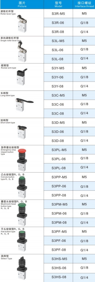 Üdvözöljük a nagykereskedelemben vagy a testreszabott S3 sorozatú mechanikus gombvezérlő szelepben a gyárunktól bármikor. Gyári kedvezményes árakat biztosítunk Önnek termékeink számára. Az OLK Pneumatic S3 sorozatú mechanikus szelepgyártók és beszállítók Kínában.