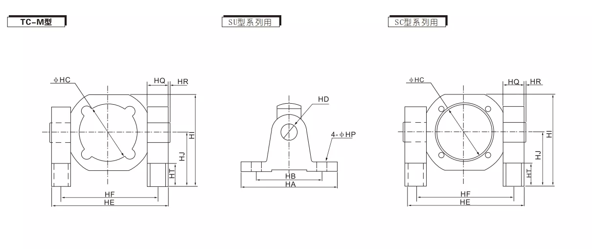 A TCTC-M konzolhoz képest a TC-M szerelő konzolnak két további szerelési alapja van, és a TC-M konzolszerkezet robusztusabb, alkalmas alkalmazásokhoz, nagy hengeres üzemi frekvenciával vagy magas hajtóerővel.
