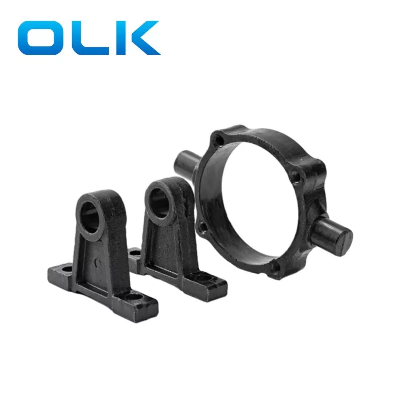 A középső lengő TC/TC-M konzol OLK szabványos telepítési konzolja nagy szilárdságú vas fröccsöntésből készül, és a felületet fekete cink-technológiával borítják, amely nem könnyű rozsdásodni, és korrózióálló. A TC/TC-M konzol általában a pneumatikus henger középső helyzetébe van felszerelve, és a TC rögzítő tartó bármilyen helyzetben rögzíthető. A léghenger a középfül tengelye körül mozoghat, amely hosszú fúró méretű hengerekhez alkalmas. A TC és a TC-M telepítési tartójának kialakítása szerkezetileg stabil, biztosítja, hogy a léghenger ne remeg a nagysebességű viszonzó mozgás során.